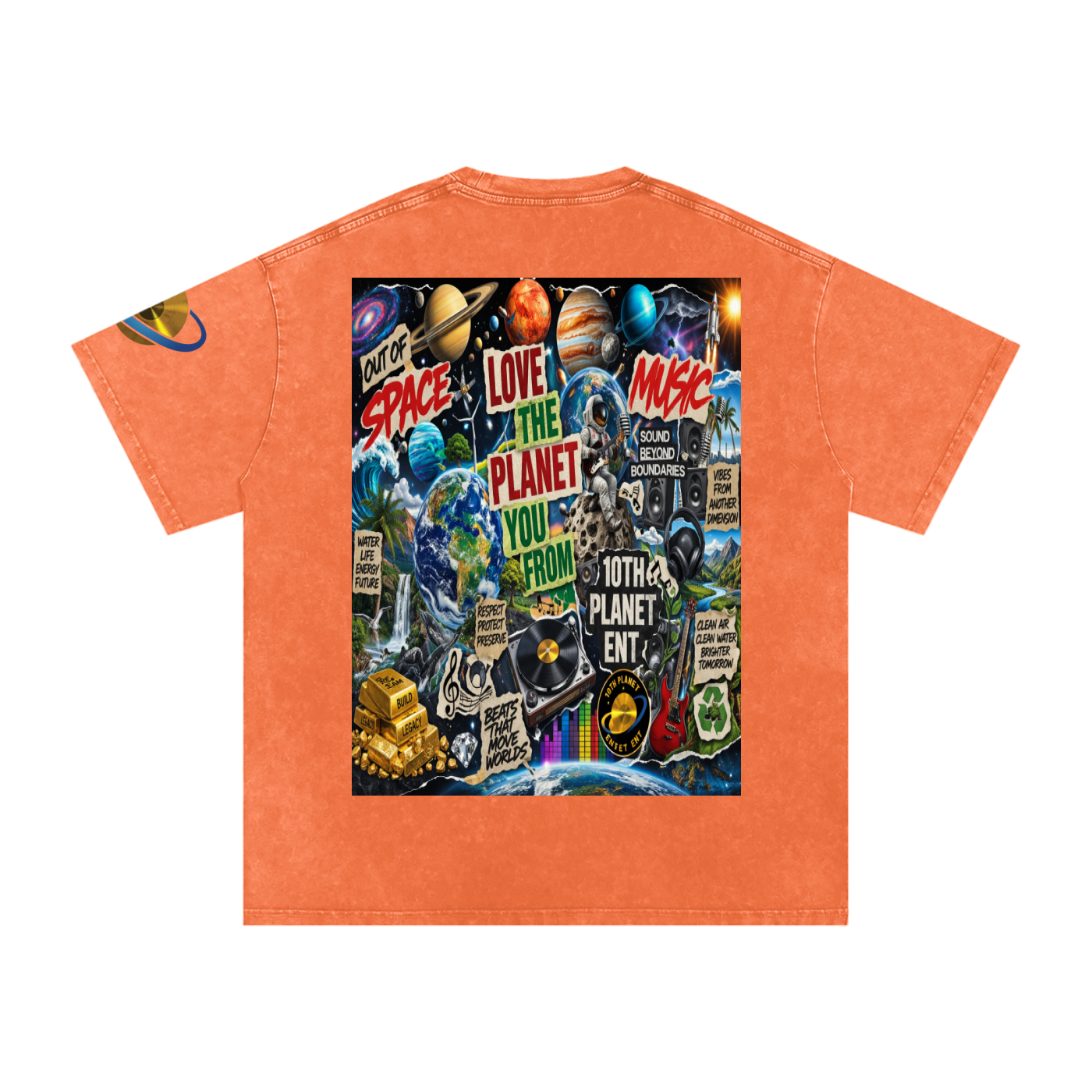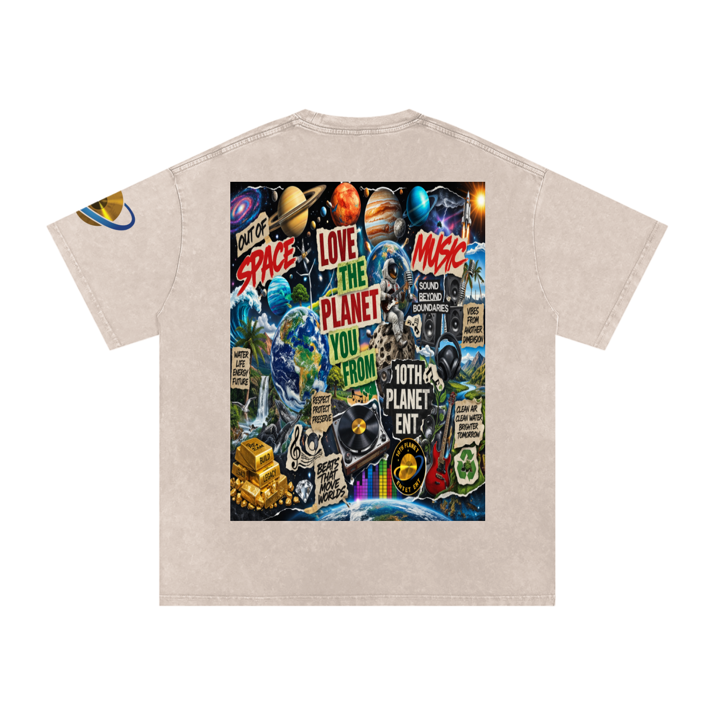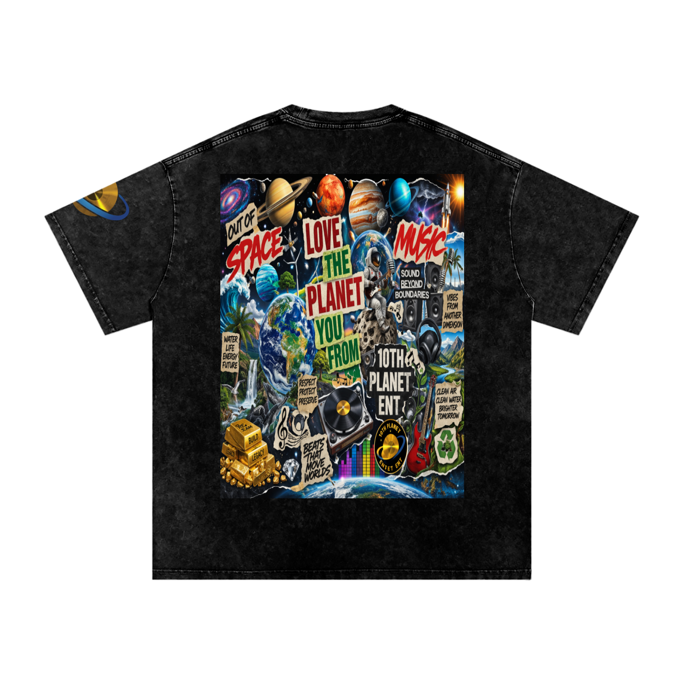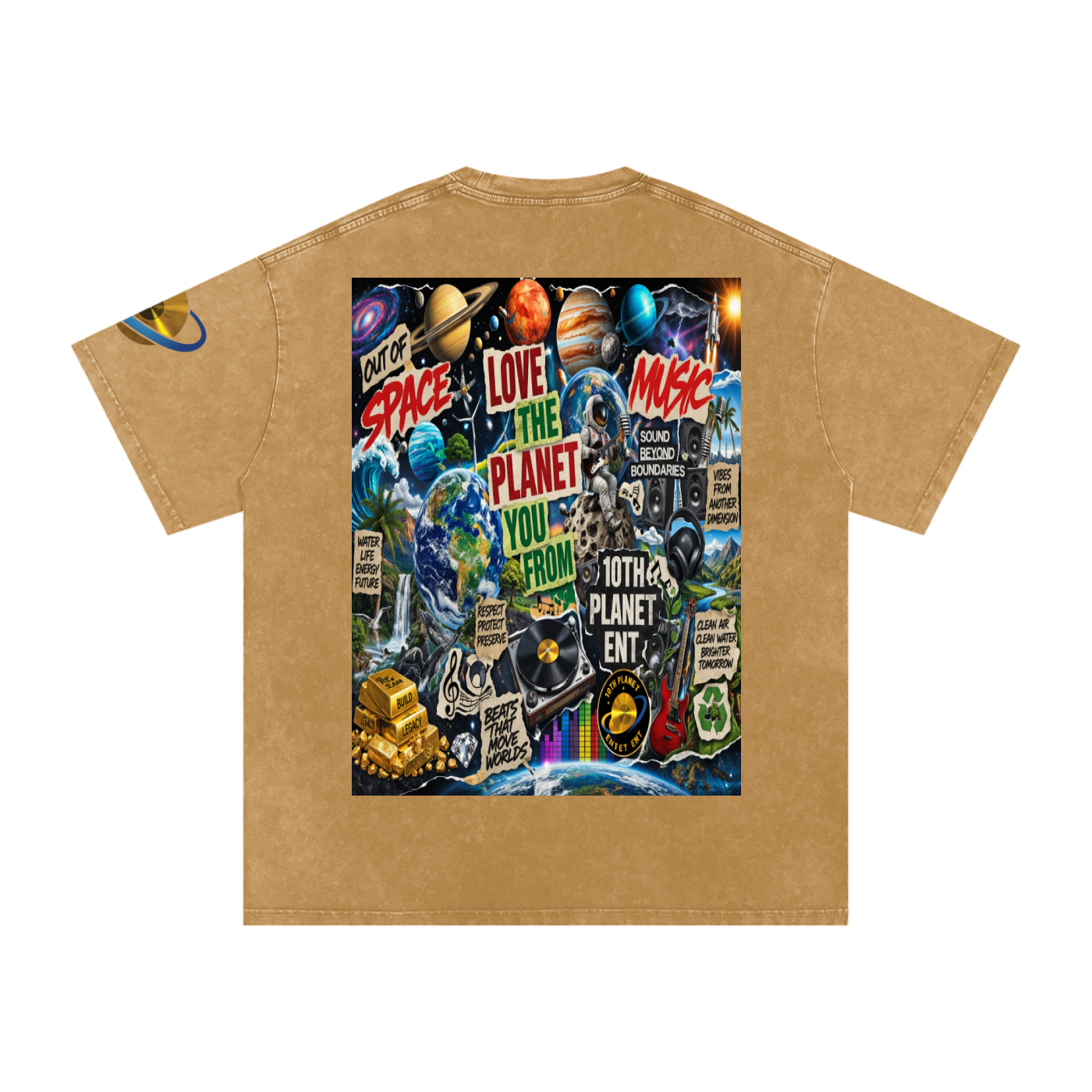 The Love Your Planet – Out of Space Music Tee from 10th Planet Ent. blends music, identity, and cosmic energy into one bold streetwear piece. Featuring a gold disk orbit logo surrounded by planetary and earth elements, it carries the message “love the planet you from” and “out of space music.”